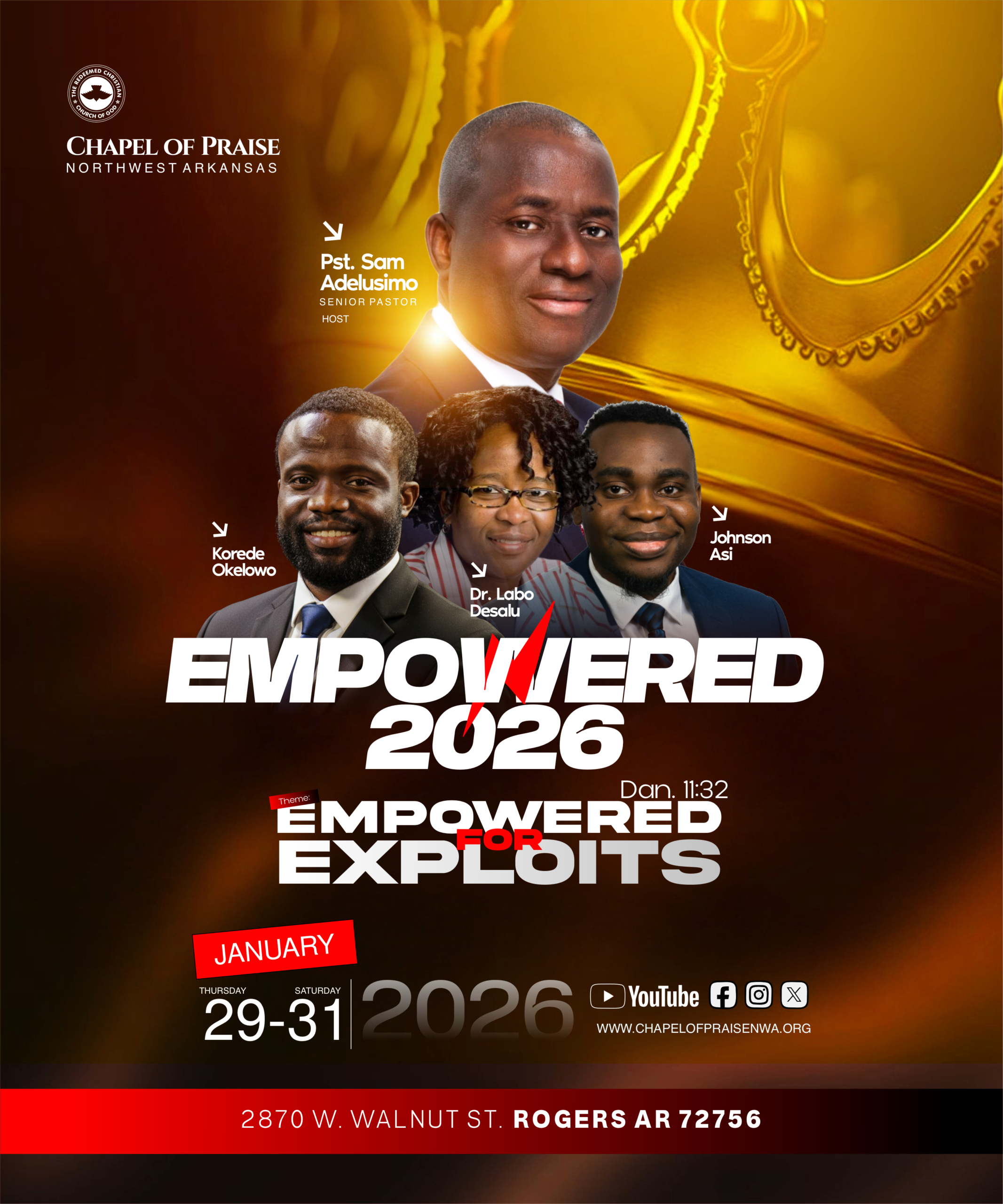 Worship Service, Sunday – 9.00 am CT – 2870 W. Walnut St. Rogers, Arkansas. 72756.